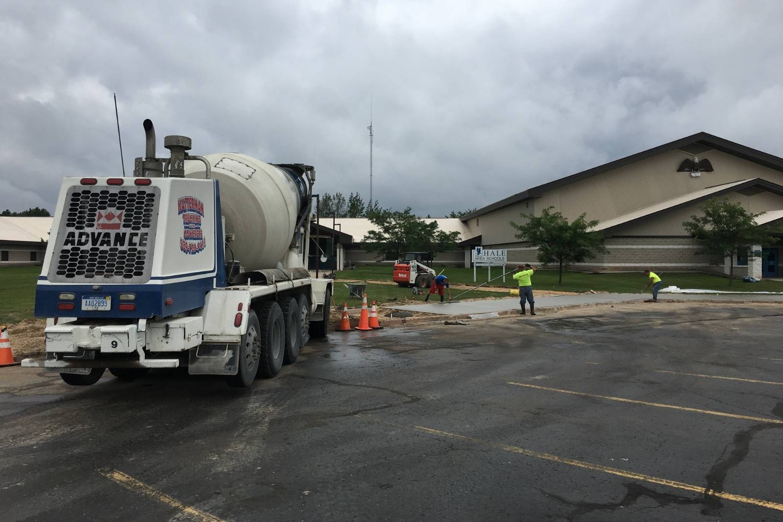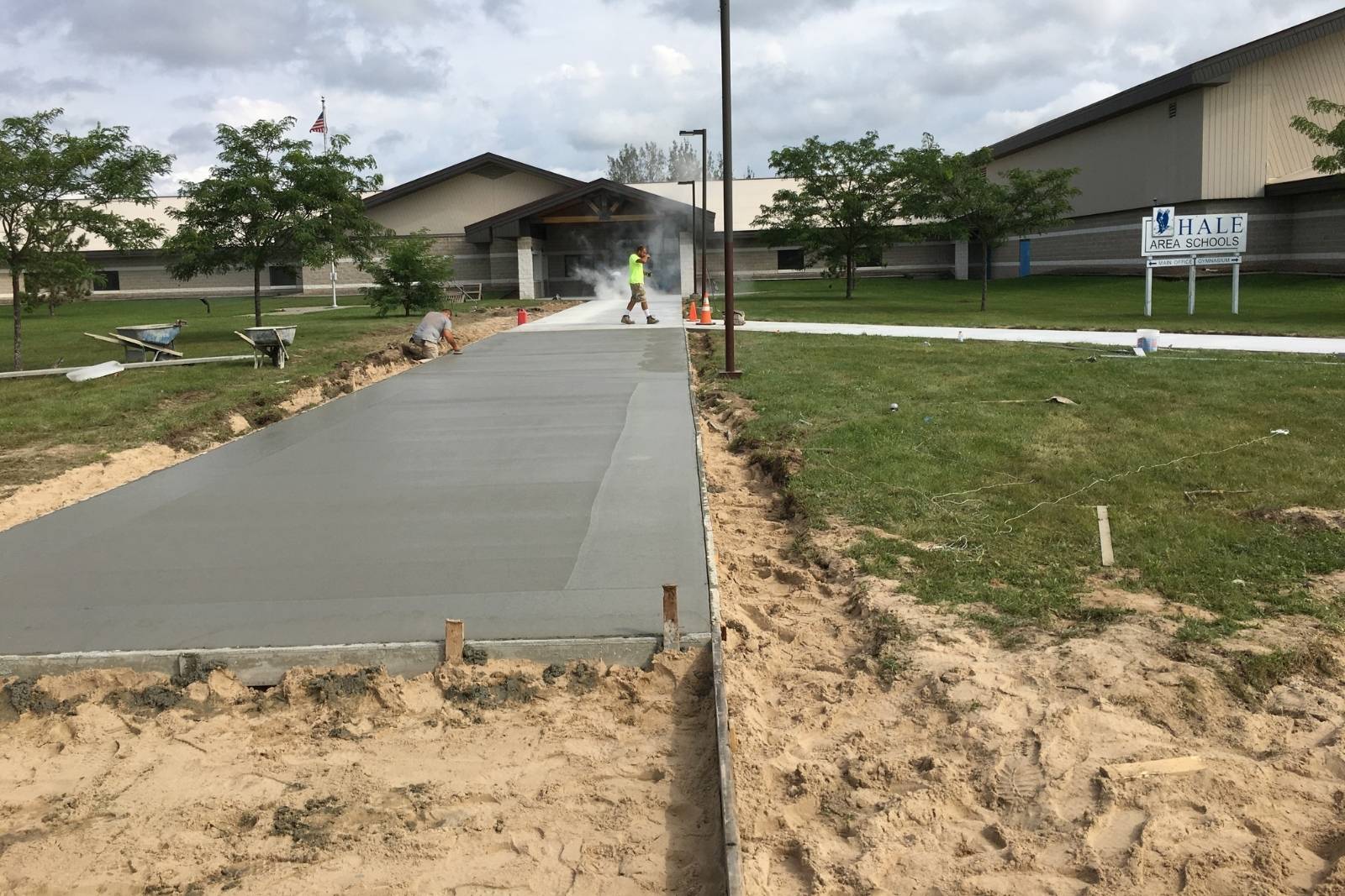 American Modern served as the general contractor and worked alongside Kessler Masonry Inc. for the exterior concrete renovation of Hale High School in Hale, Michigan. This commercial project included demolition and removal of existing concrete, excavation, grading, and installation of concrete sidewalks and walkways. The use of heavy equipment including excavators, skidsteers, and jackhammers were safely used to help complete this commercial construction project. The scope of work was coordinated with the architect, engineers, and local inspectors. As a licensed and insured commercial general contractor all work was completed in full compliance with applicable building codes, safety standards, and inspection requirements.