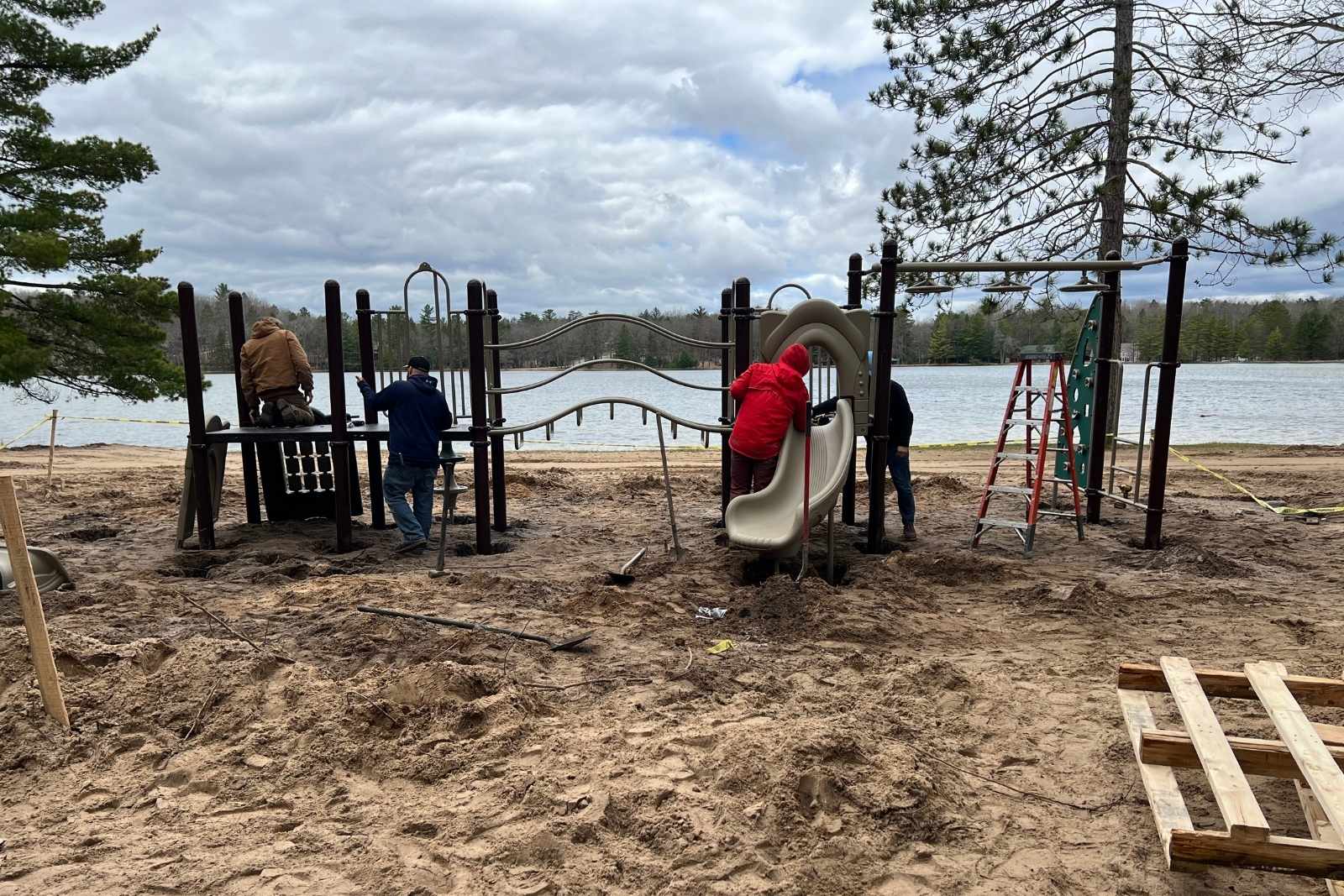 American Modern completed a multi-structure playground installation project in Iosco County, MI, serving a private residential community. The project involved the construction of three separate playground structures including slides, monkey bars, climbers, and other features. Each structure required detailed site layout, coordination, and safety-driven installation.