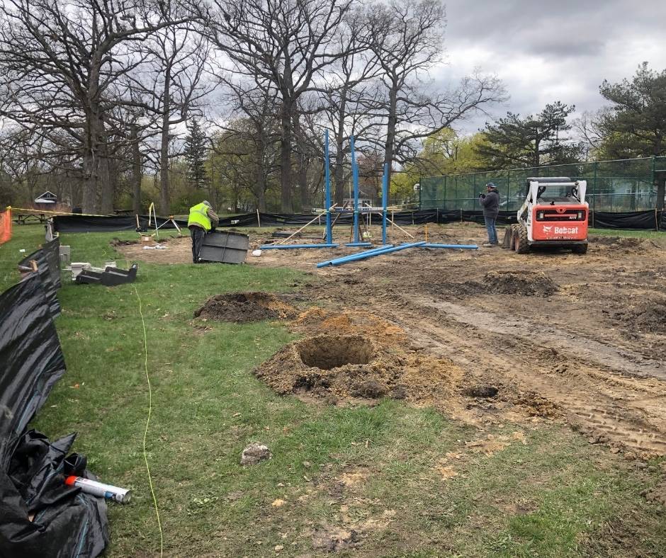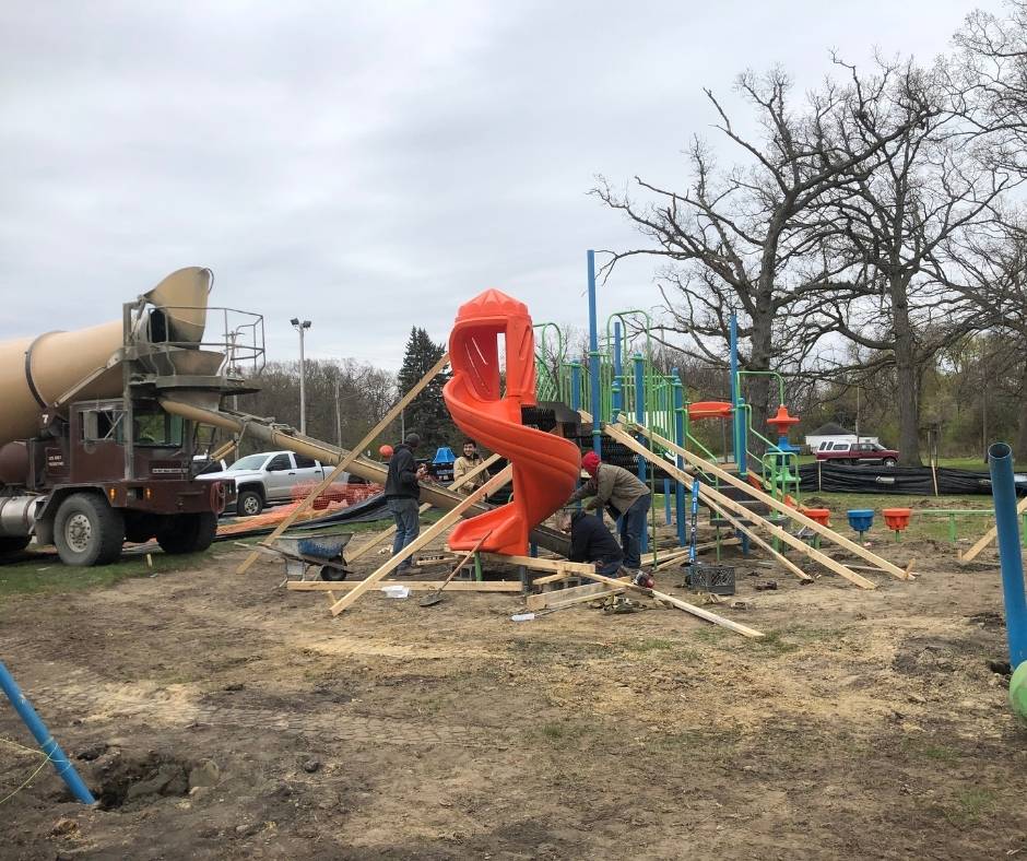American Modern served as the general contractor for this playground installation for the city of Flint, Michigan. This playground installation included excavation, grading, framing, concrete installation, and installation of two playground structures, monkey bars, slides multiple spring rockers and seesaws. The use of heavy equipment including an excavator and a skidsteer were safely used to help complete this playground installation project. The scope of work was coordinated with the architect, engineers, and local inspectors. As a licensed and insured commercial general contractor all work was completed in full compliance with applicable building codes, safety standards, and inspection requirements.